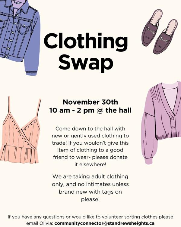 Nov 30th: Eco-group Adult Clothing Swap, 10am-2pm (more details in poster below)