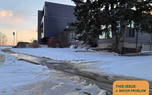 There is currently a water issue at the far end of Toronto Cres (towards University Drive). There is water pouring down the sidewalk and street.