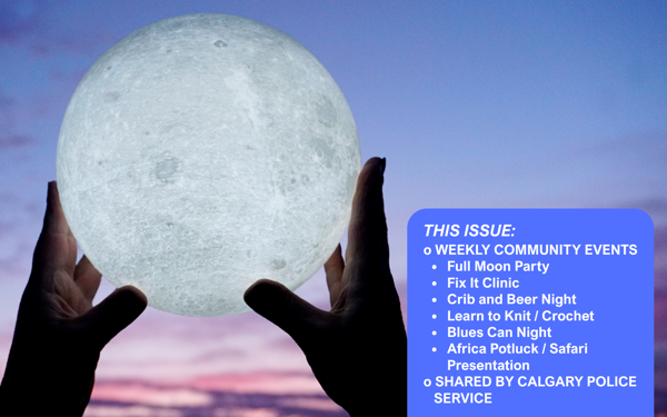 It will start with treats around the campfire at the SAH hall. Things will then move to the toboggan hill. Clarence will share his telescope and knowledge. We will watch the full moon rise (assuming clear skies).